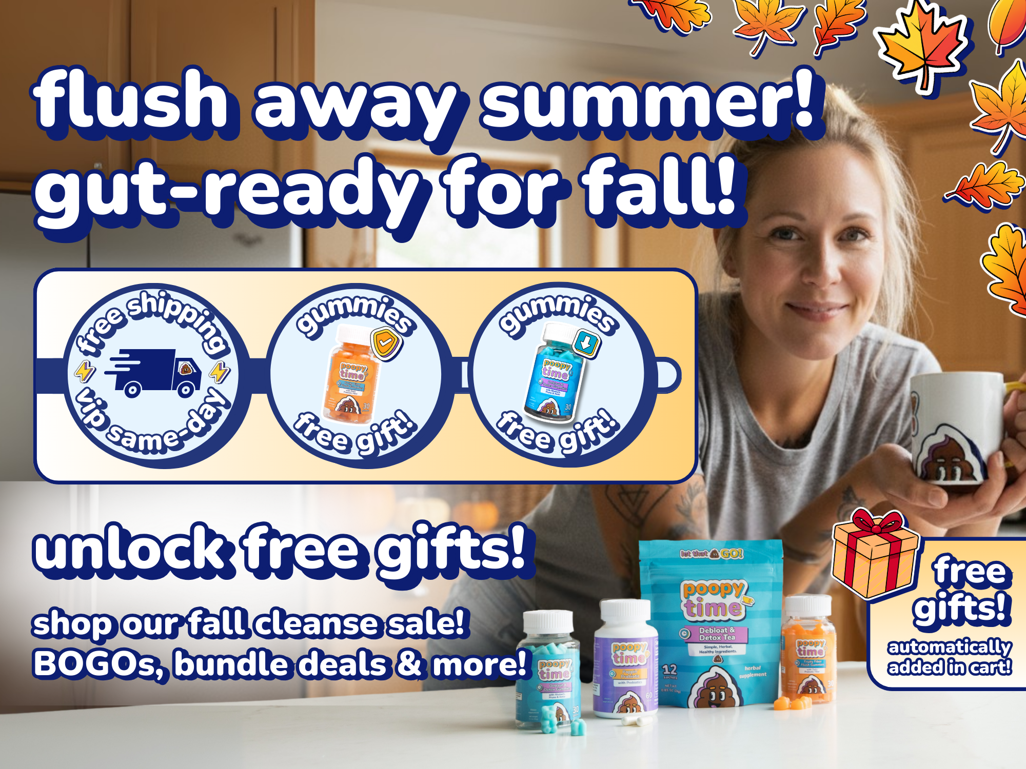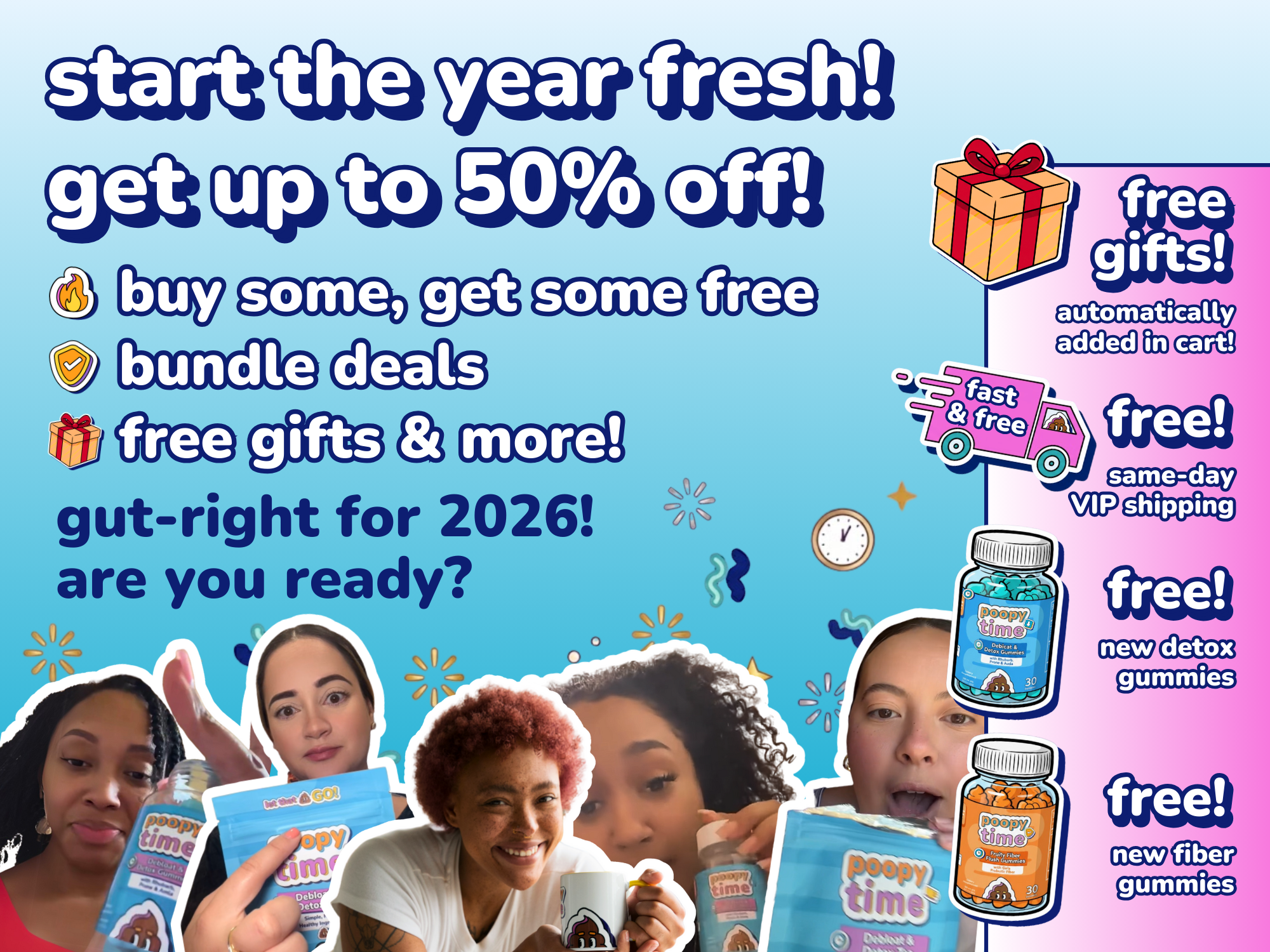 Its weighing you down. Poopy Time helps clear backed up toxins, helping you feel lighter again! *