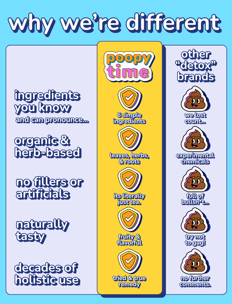 Poopy Time is pure and natural, free from gut-damaging additives commonly found in other detox teas